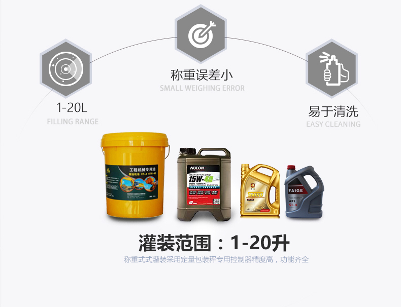 半自動(dòng)油脂灌裝機(jī)可以灌裝1-20L不等的各類食用油、潤(rùn)滑油等,并且半自動(dòng)油脂灌裝機(jī)體形較小,移動(dòng)方便,多適用于中小型 的油脂生產(chǎn)廠家,幫助廠家實(shí)現(xiàn)更快、更的油脂灌裝。半自動(dòng)油脂灌裝機(jī)的兩個(gè)頭由兩個(gè)泵分別控制,灌裝量更加并且速度也大大提高。單頻變頻器調(diào)速,克服分布不均的現(xiàn)象。有極高的穩(wěn)定性,當(dāng)某一站管道堵塞時(shí),不會(huì)影響其他站,造成灌裝精度的變化。
