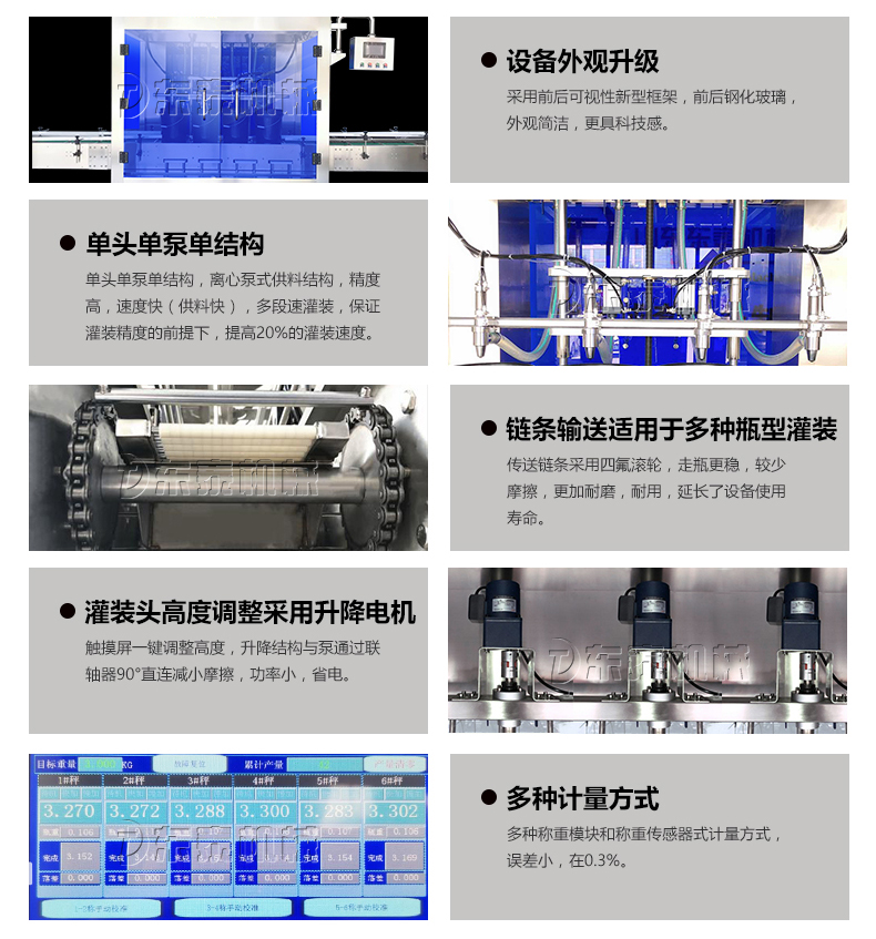 8、每個灌裝頭均有稱重和反饋系統(tǒng),可對每個頭的灌裝量進行設置和微量調(diào)整。