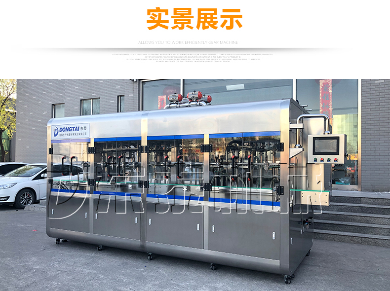 該大型潤滑油灌裝機采用容積式計量灌裝原理,適用于各種規格(1-5L)的液體肥等液體灌裝。設備采用伺服驅動活塞計量,保證了 1‰的灌裝,在保證灌裝的同時,提高了 20%-35%的灌裝速度,操作簡單,維護方便,節省人工成本,生產效率更高。