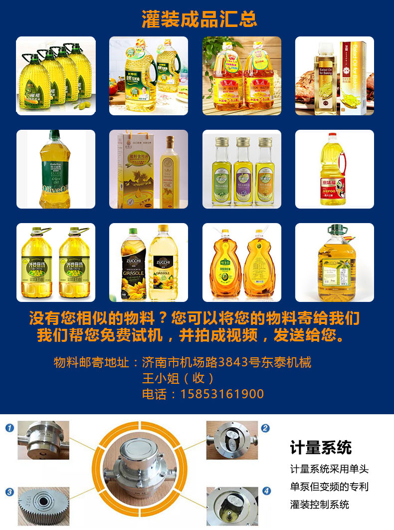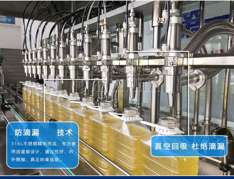 適用于各種規格(1-5升)的南瓜籽油、榛子油、牡丹籽油、芝麻油、核桃油、山茶油、亞麻籽油、棉籽油、橄欖油、大豆油、玉米油、菜籽油等食用油灌裝。